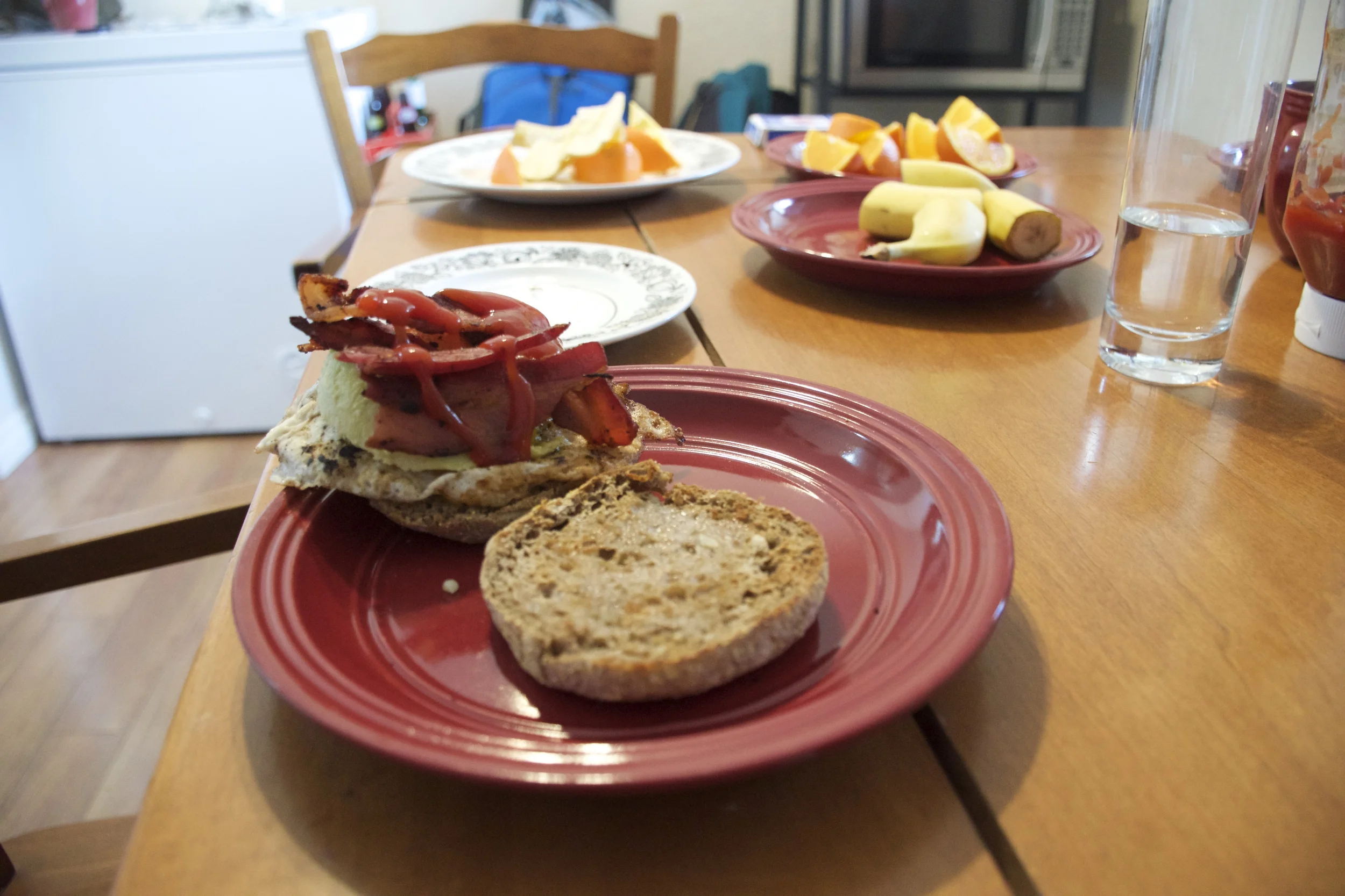 Canadian Bacon: Do you like pasta? Add bacon to it. Do you like breakfast muffins? Add bacon to it. Do you like pancakes? Add bacon to it! Apparently you can add bacon to anything in Canada and its acceptable. These were bacon and egg multigrain muffins again which were fried up by mike. According to my Canadian friends it’s more so like ham.
