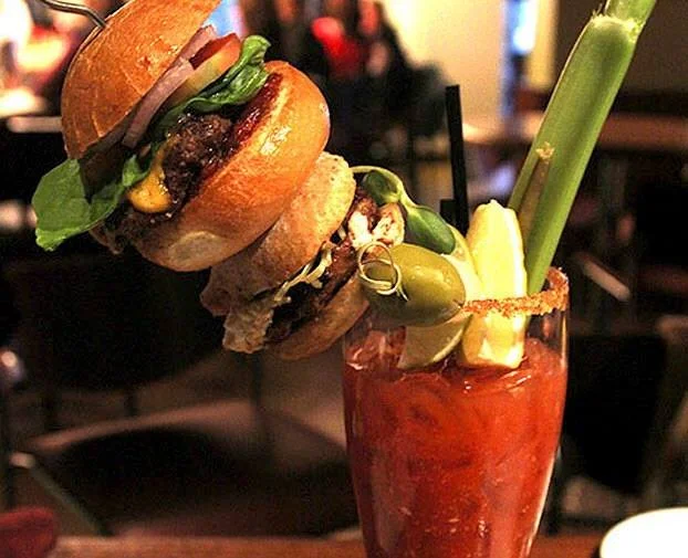Ceasars: Ceasars are cocktails made from clamato juice (clam broth and tomoato juice) vodka, hot sauce and worcestershire sauce. They are served with ice in a large, celery salt-rimmed glass and garnished with a variety of specialties. Not really my thing, but a big hit here in Canada and found in every pub and restaurant.